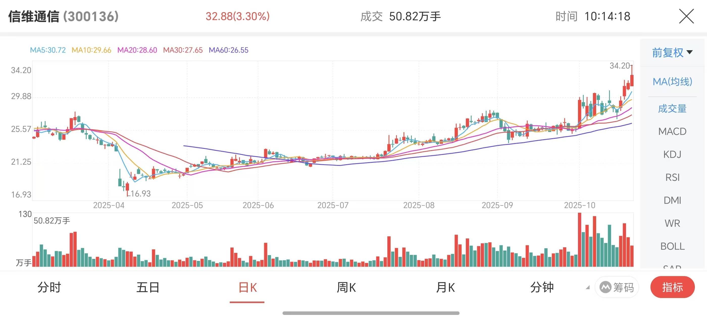 二级市场上,信维通信的业绩表现和发展潜力也得到了投资者的关注和认可。三季度财报发布次日,公司股价高开高走,最高突破34元/股,创造阶段性新高,年内区间最大涨幅超100%,市值突破300亿元。